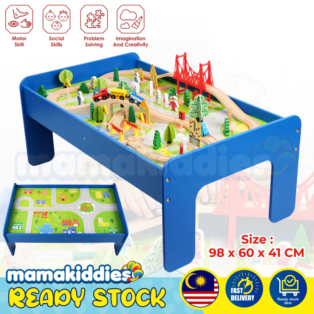 Amazon Com Imaginarium Metro Line Train Table Toys Games from m.media-amazon.com Train table sets our train table sets are designed to clear messes off the floor and give little engineers a dedicated spot to survey their villages of trains wherever their travels may take them. There are 100 pieces including train tracks and three trains. The fun doesn't stop there, however, as this set provides a brightly painted landscape that sets the scene as well as fun features like an airport with a runway, a helipad, and a. Fast & free shipping on many items! A crane lifts and lowers cargo onto the train and a helicopter soars over the town with blades spinning. Expand your options of fun home activities with the largest online selection at ebay.com. Shop dollhouses, kitchens, playhouses, swing sets and more! You can use a sheet of plywood a counter top, an old table, and dresser.